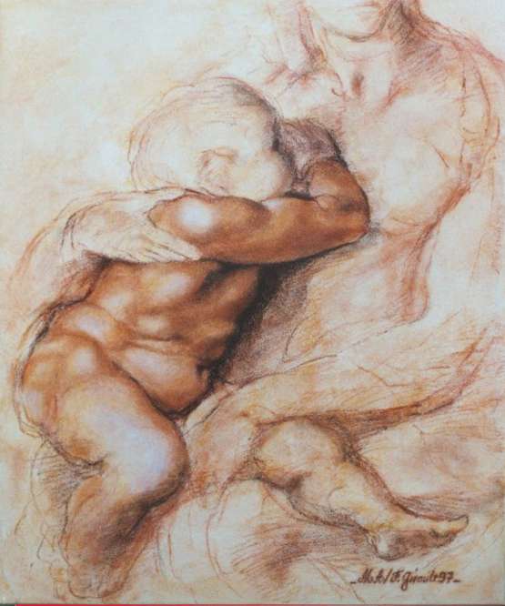 Le visage de sa célèbre Piété. Sanguine